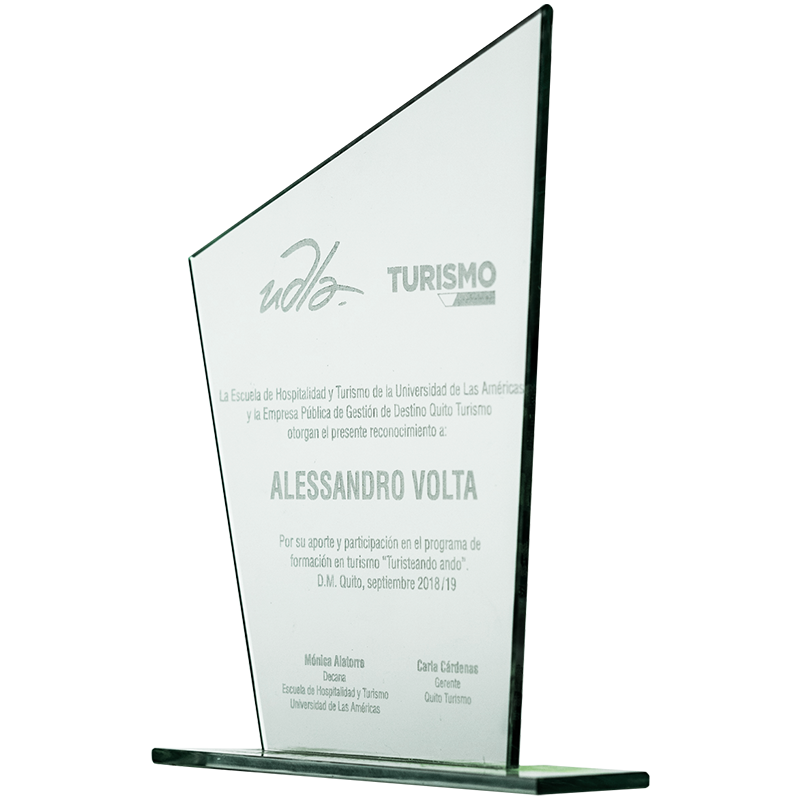 Riconoscimento per apporto e partecipazione al Programma di Formazione Turistica "Turisteando ando" Università delle Americhe